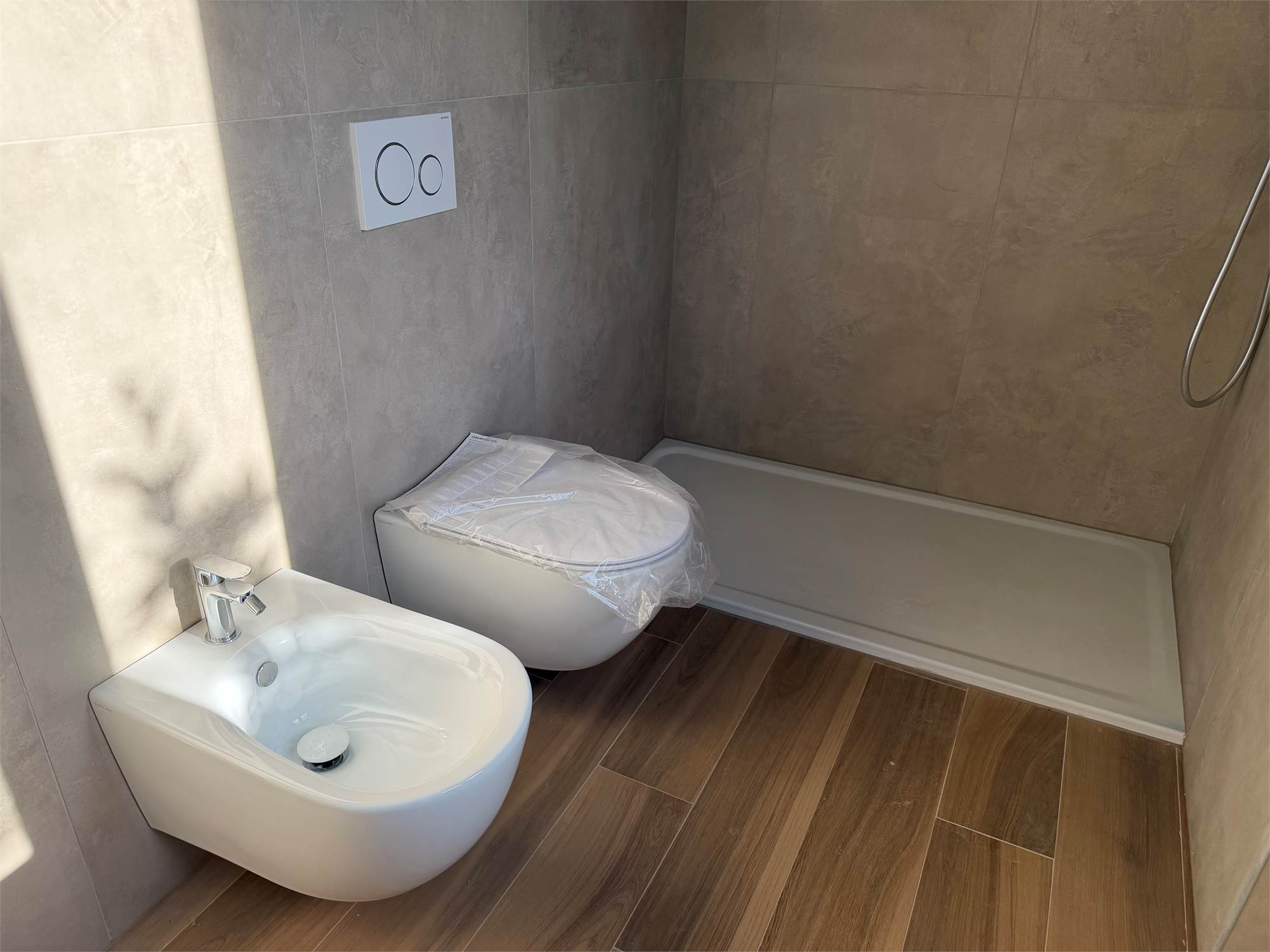 Pavimenti in gres porcellanato finto legno e rivestimenti in ceramica.